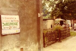 6.11.1980 – Tischlermeister Benoit hat sehr schön das Tor zu Haus Nr.24 repariert und ein neues Schloss (zu 110,- West)eingebaut. So sollen auch die anderen Tore erneuert und dann auch gestrichen werden.